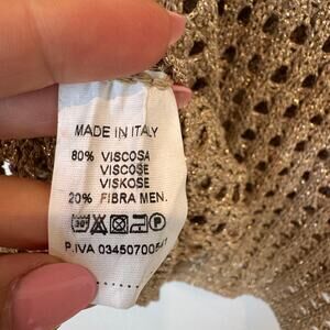 Italian Gold Woven Metallic Knit Pullover Cold Shoulder Tunic Cover-Up Top Dress