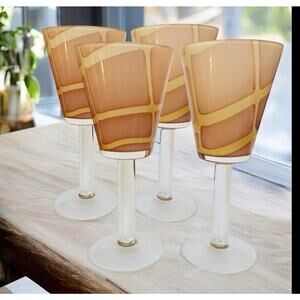 Italian Hand Blown Contemporary Cased Art Glass Water/Wine Glasses