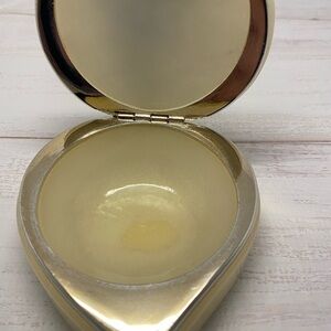 Condition: Vintage, No breaks, no chips, no cracks, hinge works well, shows some discoloration/wear/rubbing of the silver colored trim. shows some discoloration on the alabaster in a couple of small places by the rim.