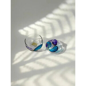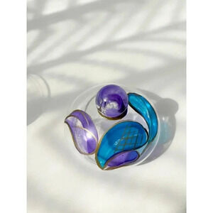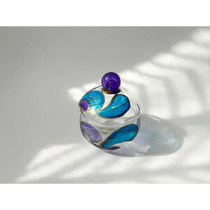Vintage Hand painted Italian made glass candy jar. Beautiful turquoise and amethyst shades. Very beautiful delicate glass. Oggetti dell'Artigianato Artistico. Super unique dish.