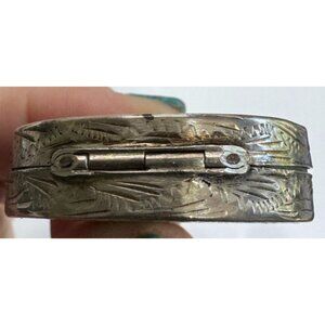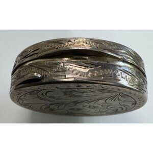 Italian Hand-Engraved Sterling Silver Oval Trinket Pill Box With Floral & Leaf