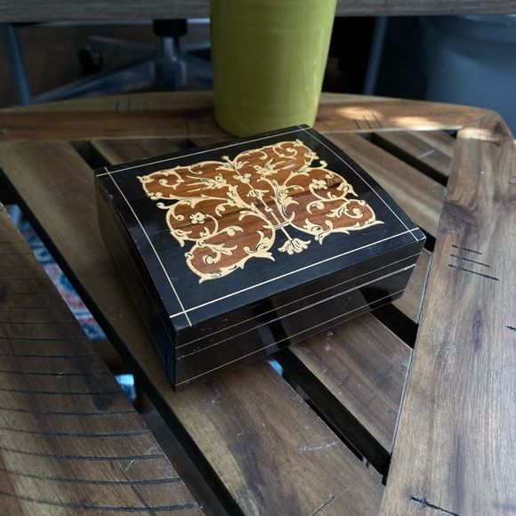 Antique Italian Inlay Music Jewelry Box - Winds Up by tool at the bottom. Plays sweet melody once opened. Has beautiful detailing on top. Great as a first gift for a grandchild too! Make an offer for a discount!