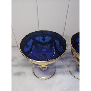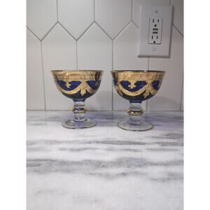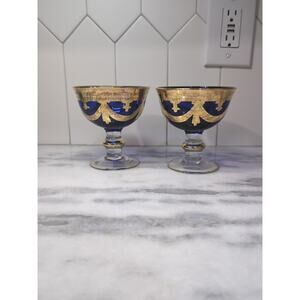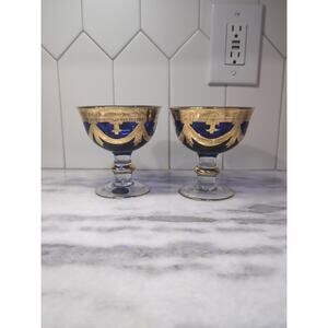 Italian Interglass Cobalt Blue Glass Compote, Serving Coupes, Gold, Set of 2
