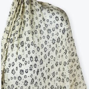 Italian Large Silk Cotton Cream Black Floral Shawl Scarf Unsigned
