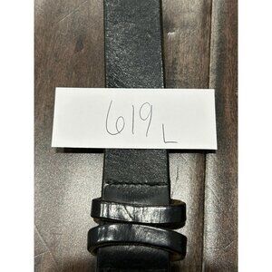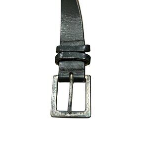 Italian Leather Belt Black Silver Sz Large Adjustable Single Prong Buckle Retro