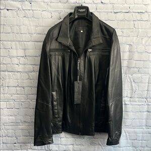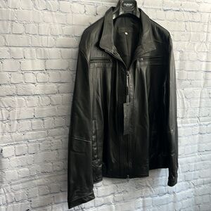 Italian Leather Black Zip Up Mens Jacket Made by CURGÈ size large NWT #6