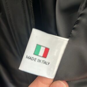 CURGÈ Men's Black Leather Zip Up Jacket Made in Italy size large new with tags, never worn. Document not included in sale, photographed to prove a valid Italian company.