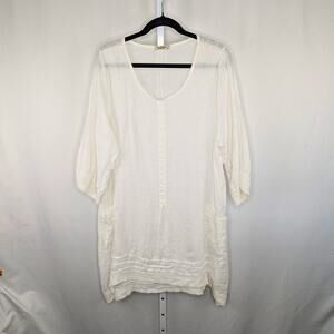 Italian Linen 1X White Tunic Dress Boho Minimalist Lagenlook Coastal Vacation