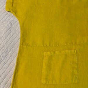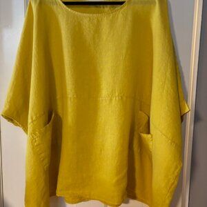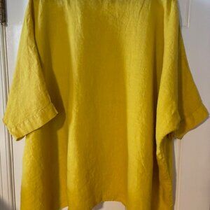 Gorgeous yellow linen top with two patch pockets; worn once - like-new condition. 100% Italian linen. Like many products from this line, this piece is supposedly one size, but I believe it would fit anywhere from a traditional large to 2X, depending on how loose and flowy you prefer your tops.