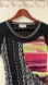 This dress showcases a striking asymmetrical design in black with vibrant red and pink hues, enhanced with intricate embellishments. The short sleeves and unique style make it a perfect choice for adding a touch of elegance to any occasion. Crafted from a soft fabric, it ensures comfort while maintaining a chic appearance. It is lined to prevent being see-through. Made in Italy, does run small. I usually wear a size medium, this is a large and fit perfectly. Worn only twice, in perfect pre-loved condition. Smoke free and pet free home.