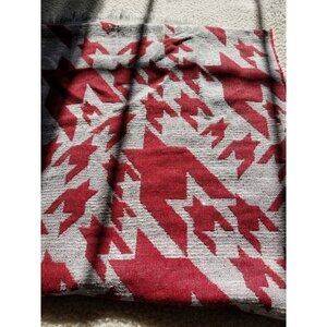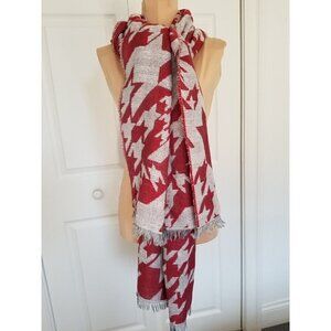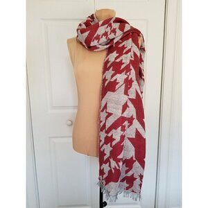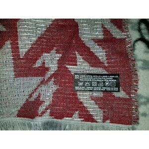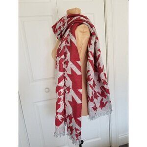 Italian Made Aztec Print Pale Gray & Maroon Wool Scarf Wrap W/ Tiny Sequins