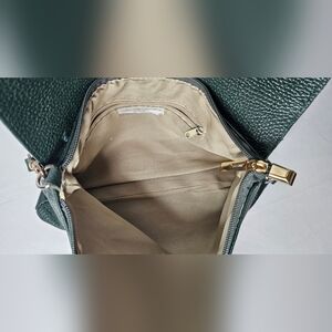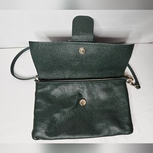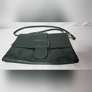 Italian Made Genuine Pebbled Leather Crossbody Purse Dark Green Buckle Flap