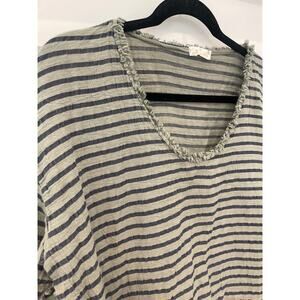 Italian Made Raw Fringe Hem Cotton Striped Lightweight Tunic