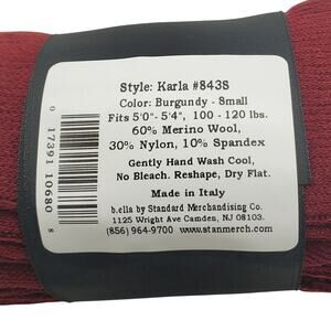 Italian Merino Wool Tights Small Burgundy Karla Ribbed Wine B.ella New Hosiery