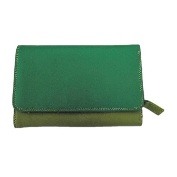 Italian Mywalit Tri-Fold Leather Wallet Coin Pouch Green Yellow Elephant Logo
