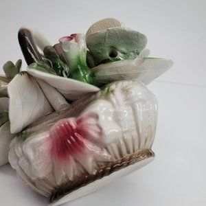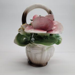 Italian Nuova Capodimonte Porcelain Flower Basket Roses Decor Pd114
