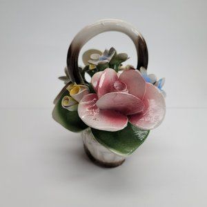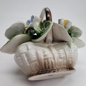 Italian Nuova Capodimonte Porcelain Flowers in Basket