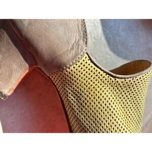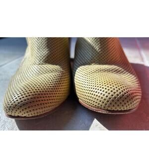 Italian Perforated Leather Bootie Heels Shootie Yellow Tan Gidigio Zipper Sz 40