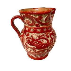 Beautiful design features with that European feel. It’s older and has a few marks and chips to prove it but it’s such a unique color and perfect for displaying on the mantle or putting cut flowers in it. Approx: 6-1/2” tall.