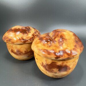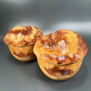 Italian Pottery Bread Pastry Cupcake Canister Jar Container Set 2 Made In Italy
