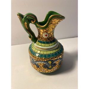 Italian Pottery Pitcher Lavorato Dipinto a Mano Oro Zecchino Mosaic Handpainted