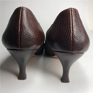 These brown ankle booties by Prevata showcase a sleek and minimalist. Made in Italy. The pointed toe and moderate heel height make them a versatile choice for both business and formal occasions. With their elegant style, these booties are a sophisticated addition to any wardrobe.