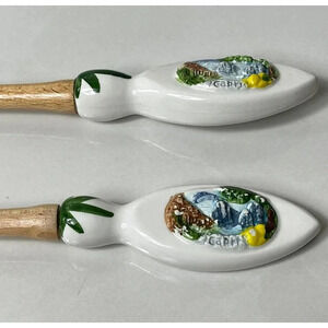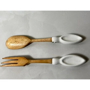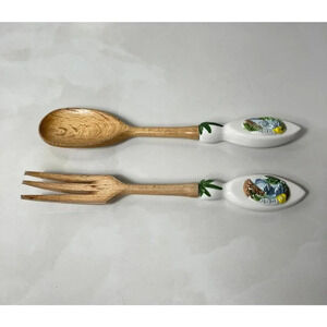 Italian Serving Salad Set Ceramics Handle Fork and Spoon Wooden Serving Utensil