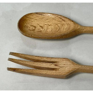 Set of Wood Salad Tongs with Ceramic Handles Dinner Party Serving Utensils Unique Fork & Spoon Wooden