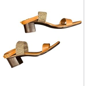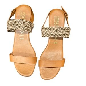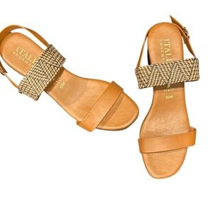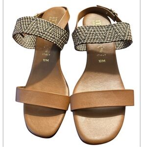 Italian Shoemaker Tan/Caramel/Brown Wicker Strapped Sandals, NWOB Size 10M.