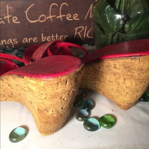 💋SALE💋Gorgeous wedges- Sz 9- Good condition- 3.5' cork heel- very lightweight- sequin red- very nice.