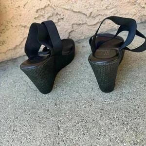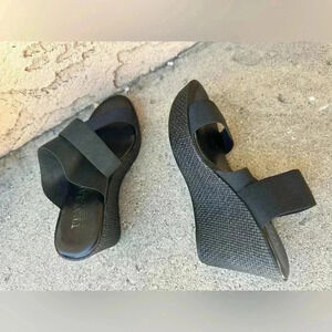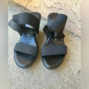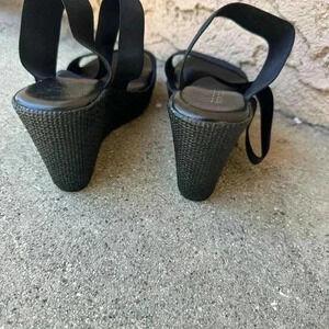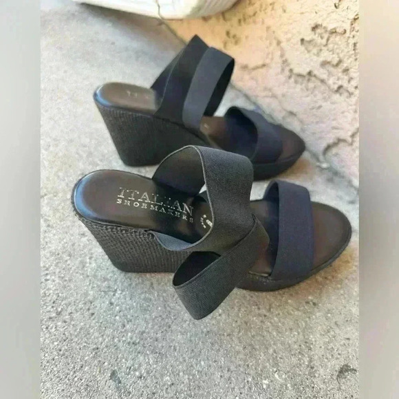 Italian Shoemakers Black Slingback Wedge Heels 7 Preowned Womens