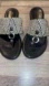 Embrace a bold look with these Italian Shoemakers sandals, featuring a striking black and white zebra-striped pattern. The flat sole and thong design ensure comfort, while the metallic gold hardware adds a touch of elegance. Perfect for casual outings, these sandals combine style and functionality effortlessly.