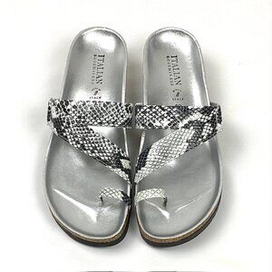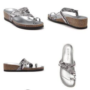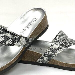 The Italian Shoemakers Giia offers a snake print edgy look for your summer outfit with metallic and cork accents and a moderate wedge height heel for all day comfort. Made in Italy. White Snake. Size 10. NWB