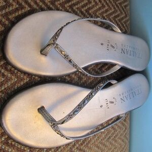 Italian Shoemakers Gold with Rhinestones Dressy Thongs / Flip Flops