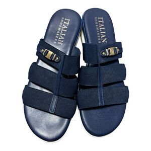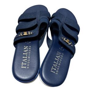 Italian Shoemakers Heels Slip On Blue Open Toe Wedge Sandals Women's Size 8.5