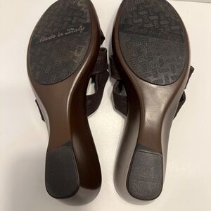 Italian Shoemakers Slip On Wedge Sandals Size 9 Brown/Gold Made in Italy