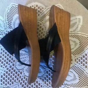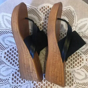 Italian Shoemakers Stretch Fabric Top Thong Slip On wedge Sandal w/Gold-Size 10