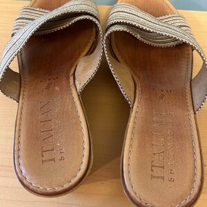 Italian Shoemakers Wedge Heels Brown Metallic Synthetic Women's Sandals Size 7