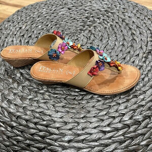 Italian Shoemakers 9 toe hook tong low heel floral sandals