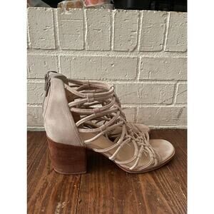 Italian Shoes Vince Camuto Cream Suede Strappy Sandal Heels Size 10M