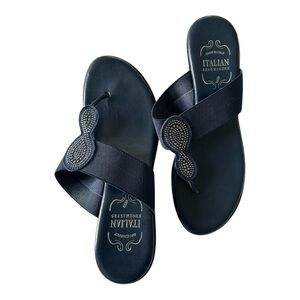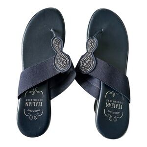 Italian Shoesmakers, Sandie, Thong wedge sandal, Navy Blue, Size 10