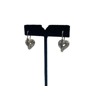 Italian Silver Filigree Heart Shaped Lever Back Earrings Love Valentines