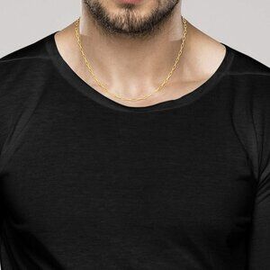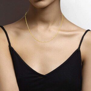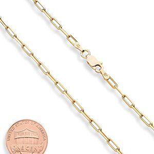 Italian Solid 925 Sterling Silver, 18Kt Gold Plated 2.5mm Paperclip Link Chain N