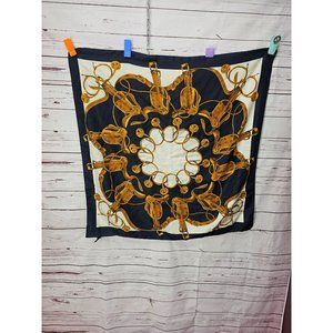 Italian Specialty House Square Polyester Navy Blue White Horse Saddle Gold Scarf