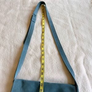 Cute & practical crossbody bag. Made of suede leather. Color blue. Unlined. Bought in Italy on vacation. Unique, one of a kind piece:) like new condition.