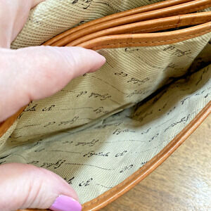 Vintage Italian Tapestry Purse with tan leather trim and Giglioli logo print textile lining. Classic 1980's designer look - casual or career shoulder bag with goldtone brass hardware and adjustable strap. This bag looks and feels like quality with a mod geometric design in the fabric and rich patina on the leather. Front flap snaps closed - interior includes 5 slide pockets. In excellent vintage condition with moderate wear on the strap (see pic) but very light wear overall - no significant damage or flaws - really cute!