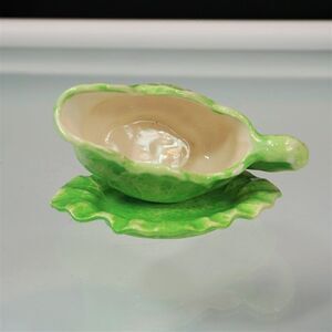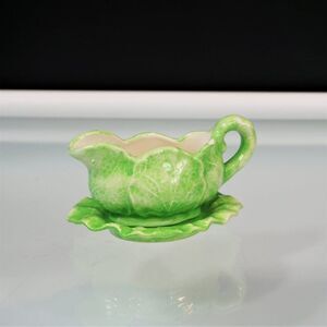 Italian The Mane Lion Pottery Cabbage Collection Gravy Boat With Underplate FLAW