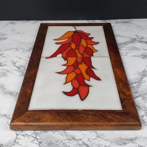 Italian Tile Wood Red Peppers Trivet Wall Decor Vintage