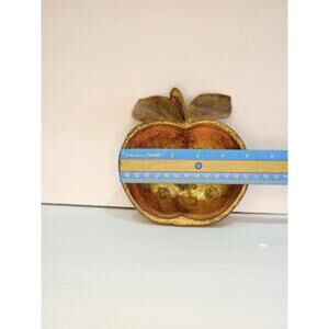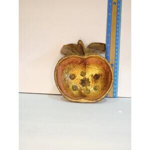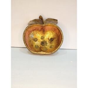 Italian Vintage Gold Gilt Hand Painted Apple Shaped 5" Decorative Wood Bowls