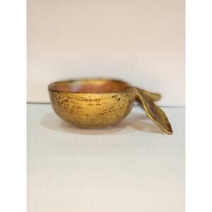 Itailiatalian vintage gold gilt hand painted apple-shaped 5" decorative wood florentine bowl with a beautiful gold patina